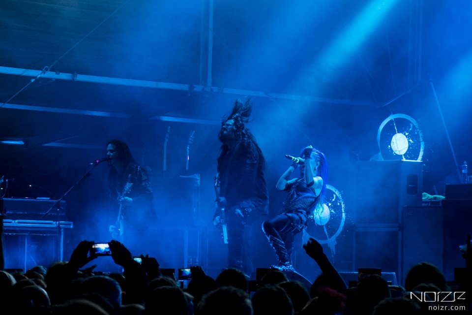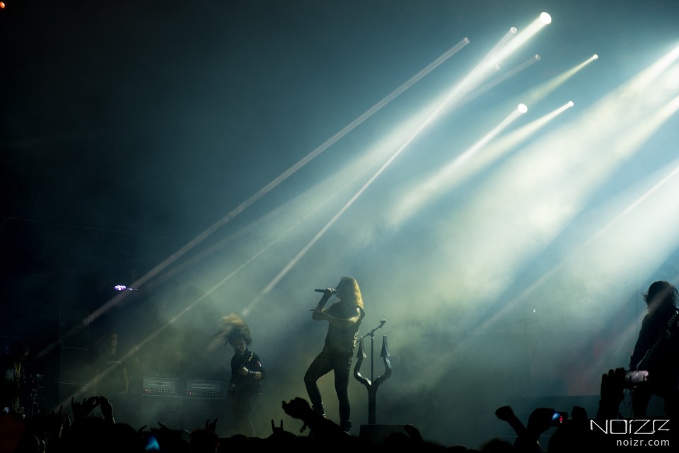 The culmination of the evening for us was the powerful performance of the Swedish death metallers Arch Enemy. After the line-up changes, joining of the new talented vocalist Alissa White-Gluz and the outstanding guitarist Jeff Loomis, the band's career has quickly rise up for the past two years. The solid new material and high quality shows open the doors for the group to headliners of most modern festivals and the key star of any of these performances is Alissa, of course. After getting in its line-up such a workaholic, the Canadian singer White-Gluz, the musicians now break into smithereens a huge crowd of metalheads. Blue-haired diva, dressed in garment emphasizing her beauty figure, rocks audience so hard that she seems to be able to control a crowd just with one wave of her hand. "She is an example for any metalhead", my colleague shared his opinion with me. From the latest album, recorded already with White-Gluz, the band played the tracks "Stolen Life", "You Will Know My Name", "As the Pages Burn", "Avalanche" and the title "War Eternal", otherwise the focus was on Arch Enemy’s old hits. In particular, they played "Ravenous", "We Will Rise", "Nemesis", "Under Black Flags We March" and "My Apocalypse".